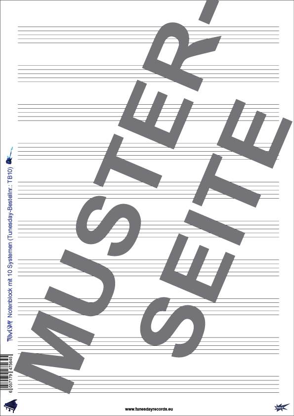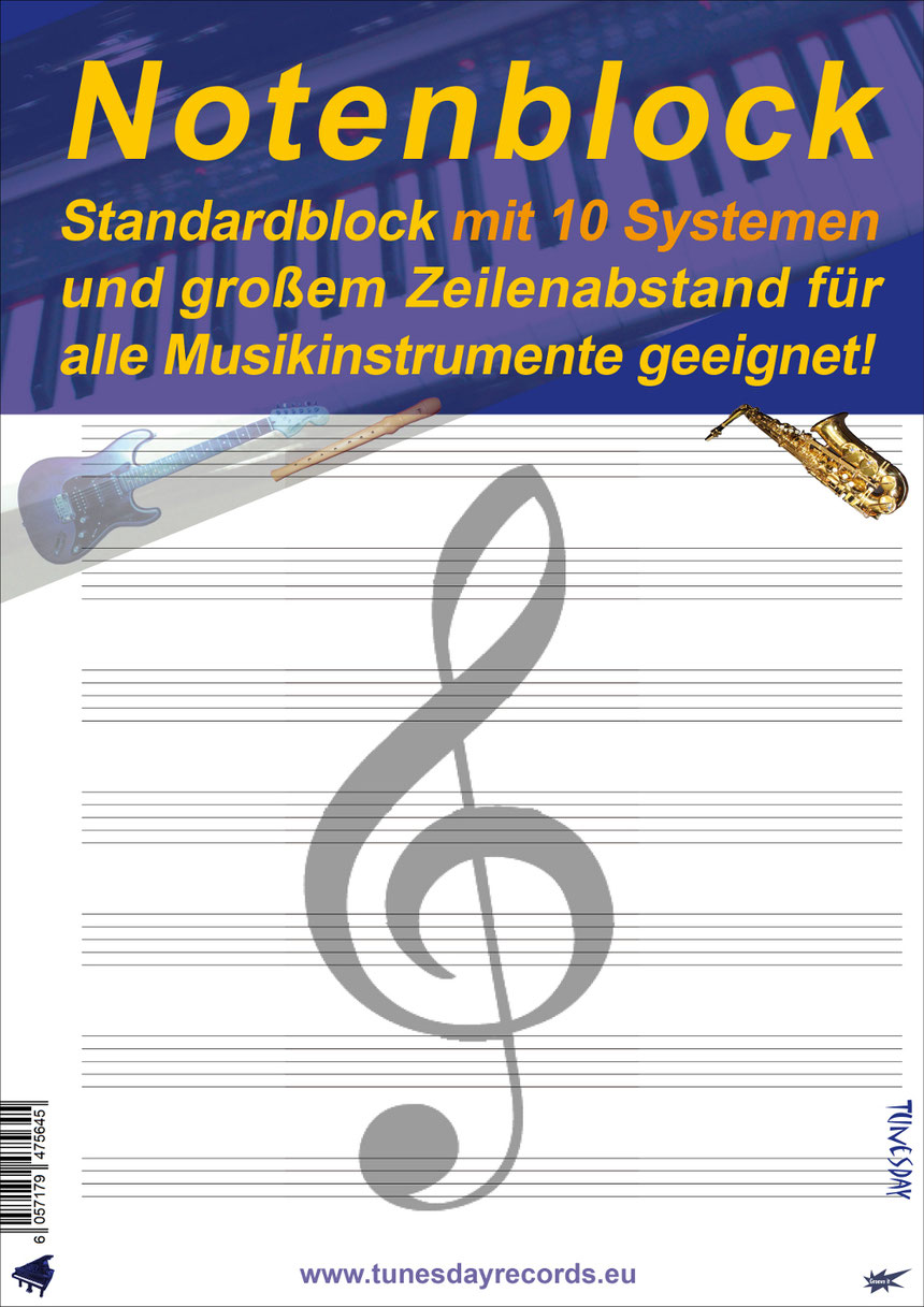 Notenblock Standard mit 10 Systemen - für alle Musikinstrumente geeignet. Lieferbar!
